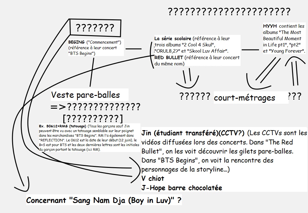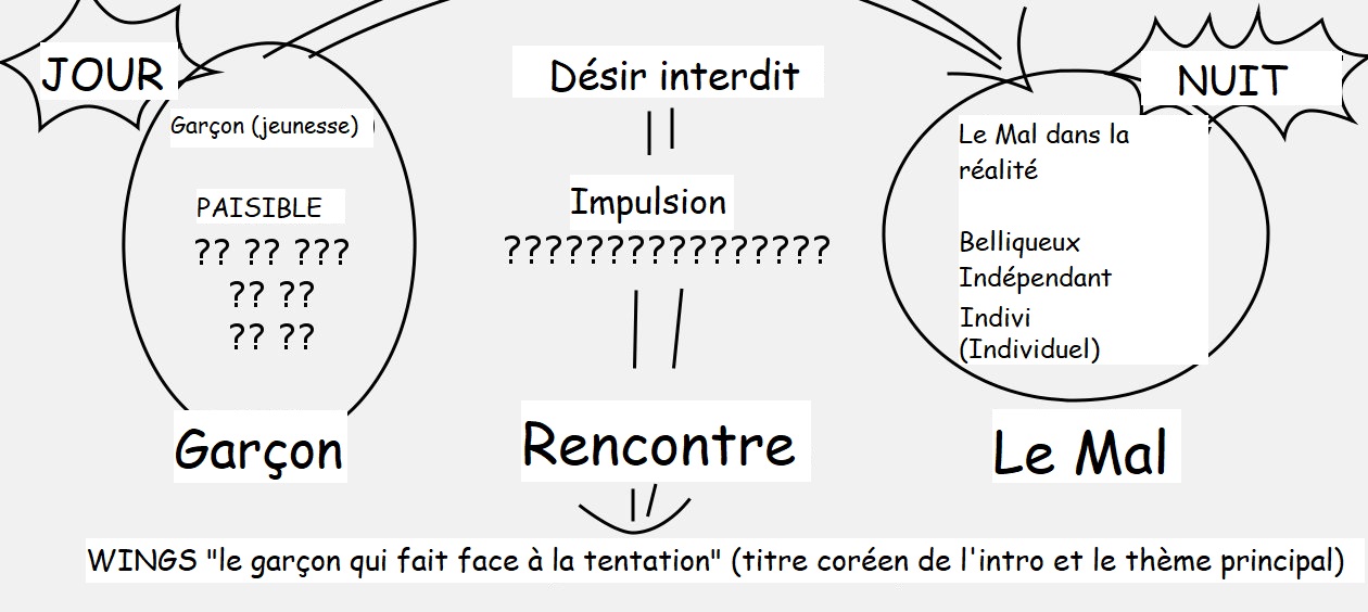 Le concept de "WINGS" est alors né. La fin du clip "Fire", "Boy Meets What" ("Le garçon rencontre quoi"). Le curseur clignotant derrière la phrase "Boy Meets..." ("Le garçon rencontre...) à la fin de "Save Me". L'histoire de BTS était déjà écrite à l'époque.