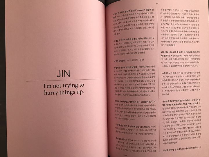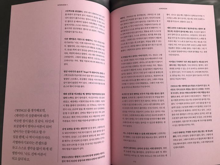 (Notes en bas des pages) "Dans la scène où je devais pleurer, je l'ai fait pour de vrai. Ils ont joué des chansons sur le tournage pour créer une atmosphère. Je suis assez sensible aux images et aux sons, alors j'ai pu pleurer facilement." - Jungkook