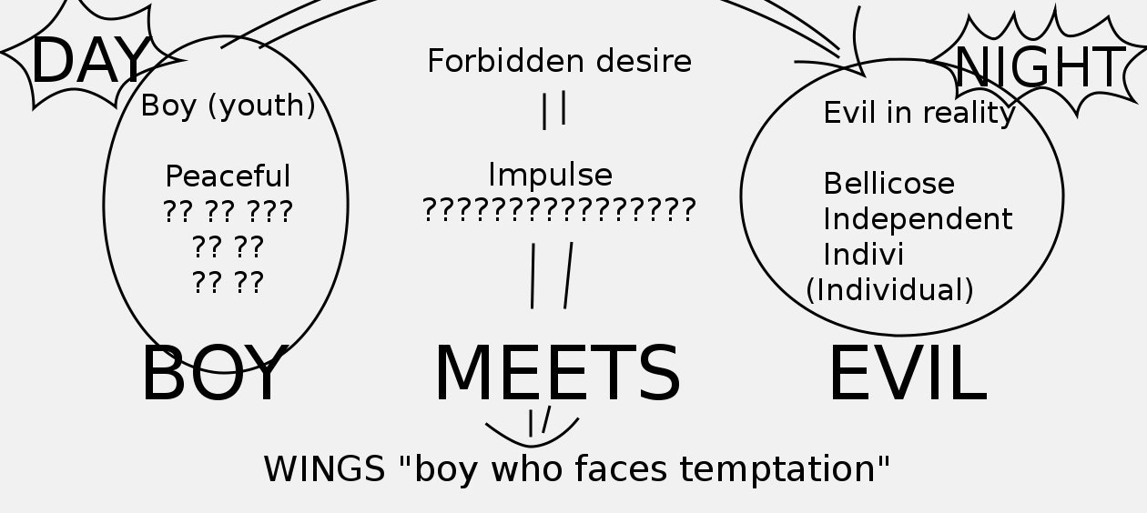 Ce que le garçon rencontrera, c'est "Boy Meets Evil" ("Le garçon rencontre le mal") de WINGS ou, en d'autres mots, les fissures et tentations du monde. Quelque part dans la série "Hwa Yang Yeon Hwa" ("The Most Beautiful Moment in Life". La série contient les albums du même titre part 1, 2 et Young Forever), la planification de "WINGS" a commencé, lorsque BTS a repensé à ce qu'ils ont ressenti en traversant ce qui pourrait être appelé leur meilleur moment dans la vie.